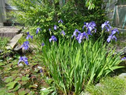 朝、東門であいさつに立っていると、地域の方が「空がきれいですね」とおっしゃっいました。ふと見上げると雲一つない青空でとても気持ちがよかったです。目を下すと青紅葉がきれいでした。ひょうたん池ではカキツバタがきれいに咲いています。春っていいですね。新緑の春ですね。