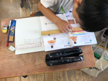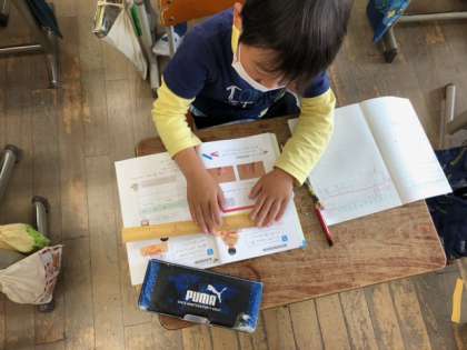 ものさしを使ってさまざまなものの長さを予想して、実際に測りました。子どもたちは、とても楽しく調べていました。