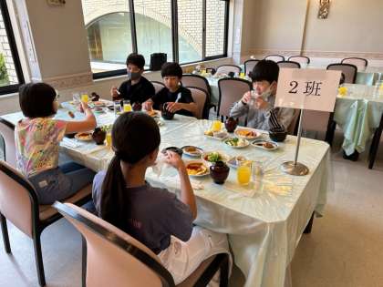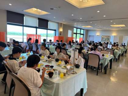 朝食の様子です。食欲旺盛な子どもたち。朝からしっかり食べています。今日も一日中楽しみましょう。お天気にも恵まれ、最高の修学旅行日和です☆