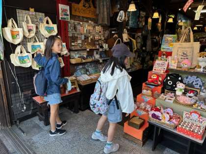 お店がたくさんあり、迷いながら友だちと相談する姿も。