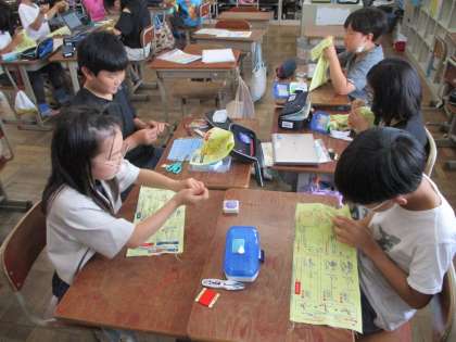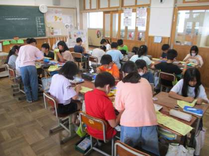 家庭科の学習では縫い取りの練習をしています。今日の学習では本返しぬいの練習を行いました。玉むすび、玉どめにも慣れてきた様子がみられ、スムーズに学習に取り組める様子が広がってきたように思います。