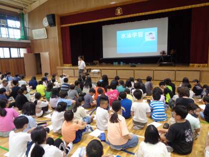 低水位期間が終わり、明日から水泳学習が本格的に始まります。今日は5・6年生に授業の進め方について話しました。さすがは高学年。しっかり聞いてくれました。