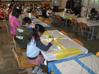1年生も2年生もおはしを上手に使って豆をつまんでいる様子でした。