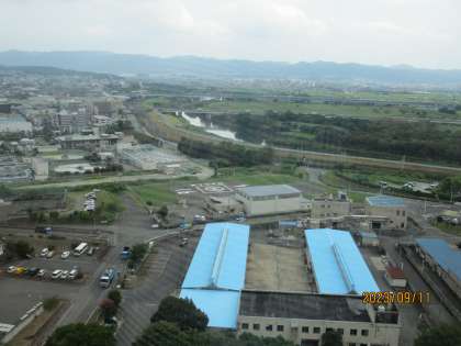 展望室からは、足元に拡がる桂川・宇治川、周囲を囲む三山などを眺めることができ、絶景でした。