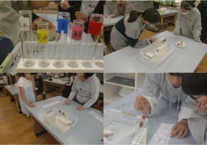 今日はリトマス紙を使って、水よう液の性質を調べました。「酸性」「中性」「アルカリ性」を赤色リトマス紙と青色リトマス紙を使って調べました。番外編の梅干しやレモン、こんにゃくも調べてみました。1回の学習だけでは、なかなか覚えられないので、リトマス紙を使った実験をもう1回予定しています。