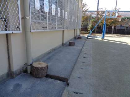 運動場にこんな素敵な椅子?腰かけ?が登場しました。とってもかわいらしく、子どもたちはきっと喜んでくれるでしょう。管理用務員さんが作ってくれました。座っている子どもを早く見たいです。