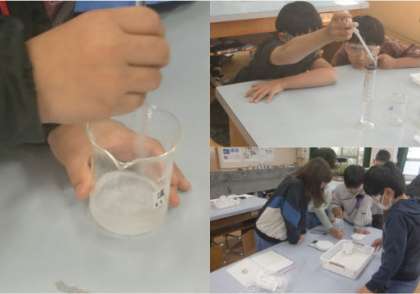 食塩やミョウバンは、同じ水の量でいくらでもとけるか、とける量には限りがあるかを実験で確かめました。食塩は50mLの水に15gまでとけましたが、20gではとけ残りが出ました。ミョウバンは、同じく50mLの水に5gが精一杯でした。10gはとけませんでした。次の時間は、限界があったとける量に挑戦し、とけ残りをさらにとかすにはどうしたらよいかを学習します。