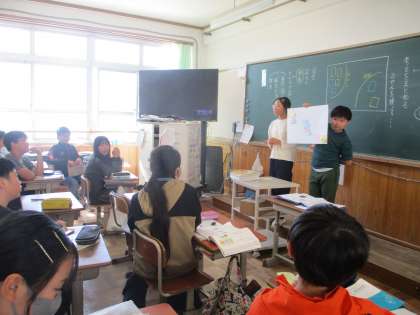 よりよい学校生活を送るためにどのようなことが必要でしょうか。5年生の国語の学習では、各クラスでテーマを決め、現状や問題点を話し合った後に解決策を出し合いました。い組は持ち物について、ろ組は言葉遣いについて話し合うことで理解を深め合いました。