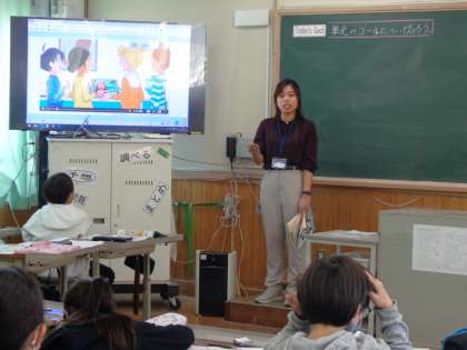 Language Teacherのことで英語の学習で補助をしてくださるネイティブスピーカーの先生です。子どもたちはALTの先生の英語を聞いて学習を進めています。今日は6年生の授業を見たのですが、本当に長い英語の会話を一生懸命聞いていました。