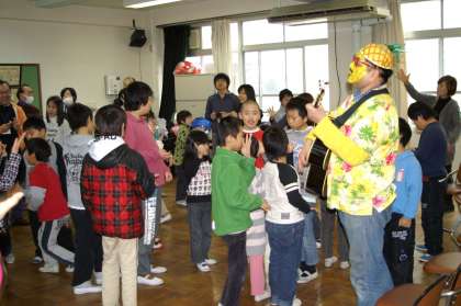 はじめは,パイナップルパパといっしょに「北下支部のなかま」のうたをみんなで歌いました。