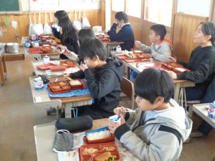 食べた感想を聞くと「美味しかった!」や「いろいろなおかずが入っていた!!」など、中学校での昼食について考えている様子でした。