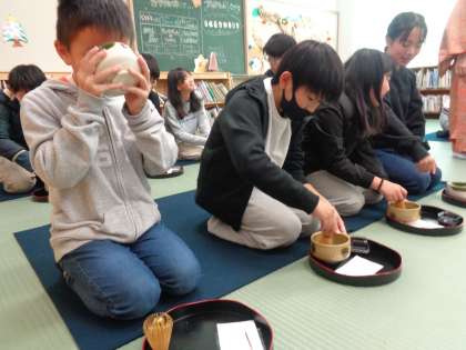 6年生が茶道を体験しました。現代社会においてあまり正座をしなくなりました。きっと足は痛かったと思いますが、みんな我慢して茶道に臨みました。おいしい和菓子を目の前に、笑顔がこぼれました。おいしくいただいた後はお茶を自分でたてます。自分でたてた抹茶は少しほろ苦かったでしょうが、きっとおいしく感じたはずです。貴重な楽しい経験でしたね。