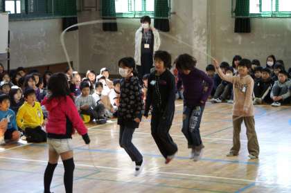 4年生は,6年生が今まで取り組んできた ダンスや組みたいそう・ダブルダッチなどのことを,短い劇にして再現して発表しました。