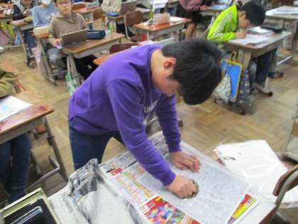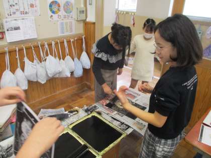 5年生の版画の作成が刷る段階まで進んでいます。一生懸命に彫った作品を刷り、たくさんの素敵な作品が完成してきています。