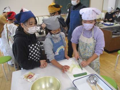 5年ろ組が調理実習でご飯とみそ汁を作りました。透明鍋で炊ける様子をじっくりと観察したご飯や、だしを取るところから丁寧に仕上げたみそ汁はとてもおいしくできました。