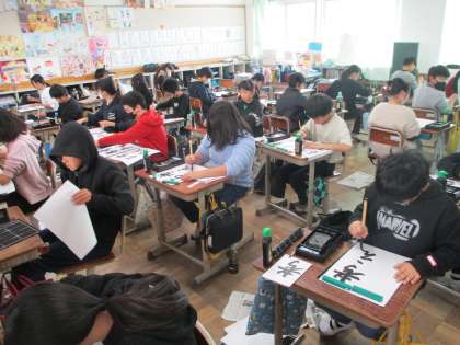 5年生の書写の学習では、今までの学習を生かして「考える子」と毛筆で書く学習を行いました。ひらがなの曲線を書くことに苦労している様子もありましたが、一生懸命に作品を仕上げることができました。
