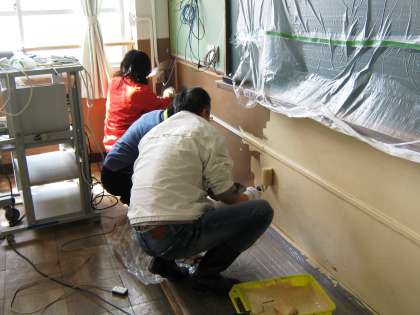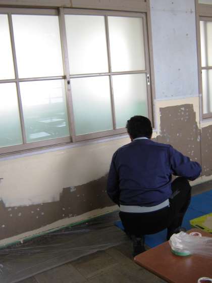 教室の他にも階段や廊下も塗装しました。
