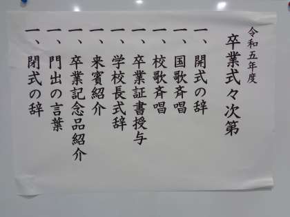 とうとう卒業式前日です。リハーサルはいつもの練習とは違う雰囲気で、みんな緊張していました。放課後は教職員で準備をしました。明日は全員元気に卒業式に参加してほしいです。ハンカチを忘れないように気を付けないといけません。緊張するなぁ・・・。