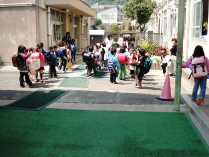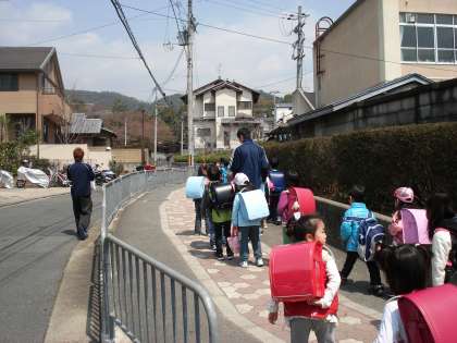 新1年生は,しばらく集団下校します。