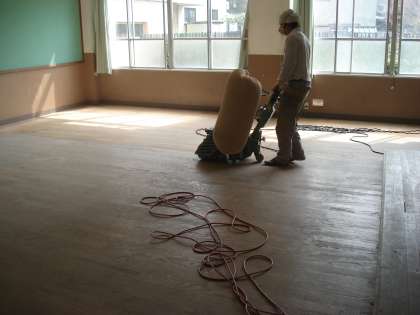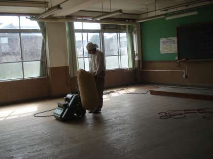 今年度はここをランチルームにすることにしましたので,教室の床を研磨コーティングいたします。