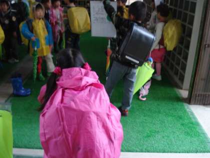 雨の集団下校!