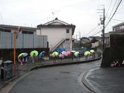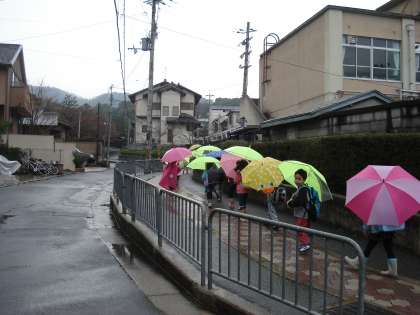 雨の集団下校!