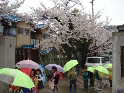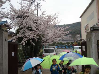 今日は雨が降っていますので,レインコートを着たり傘を差したり,大変なことになっていました。