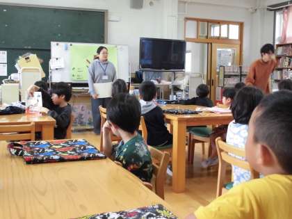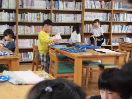 学校司書の先生に,図書館の使い方や本の借り方を教えていただきました。子ども達は,学級文庫の本も大好きでよく手に取って読んでいますが,図書館の本の数の多さにびっくりした様子で,今日は1冊借りますと言われて戸惑う子もいました。本来,学校の図書館の本は,1度に2冊,2週間借りられるのですが,今日は1人1冊借り,学校の読書タイムに読む用に置いている子もいますし,おうちの人に見せたいからと絵本バックに入れて持ち帰った子もいます。おうちの本と混ざらないようお気をつけください。