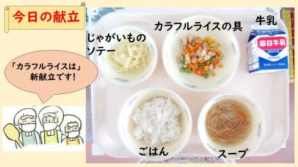 今月の新献立は「カラフルライス」です。