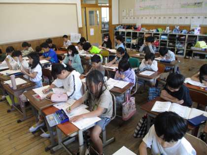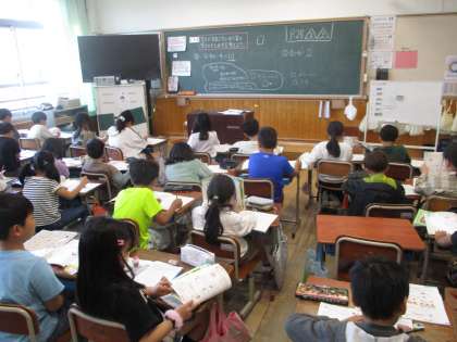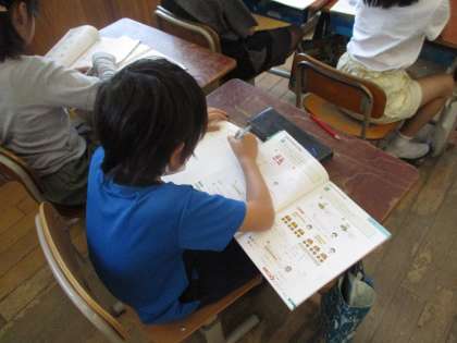 3年生の算数の学習では、わり算の学習を進めています。九九を使った計算の仕方や、九九にない計算の方法についても考える学習をしています。前向きに進んで学習に取り組んでいる人がたくさんいて、みんなとても頑張っています。