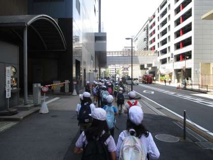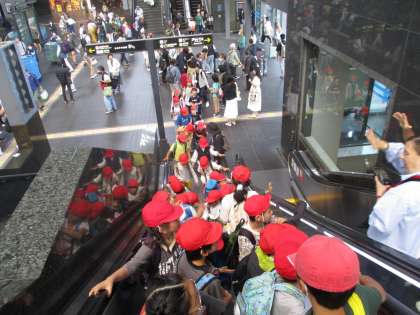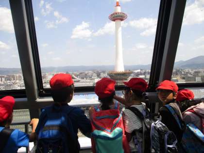 3年生が校外学習で京都駅ビル、梅小路公園方面に行きました。京都駅ビルの空中経路では、社会の教科書で見ていた京都市の様子を実際に自分の目で確かめることができました。京都市は山に囲まれていることを実感し、金閣小学校の近くの大文字山の大の字も確認できました。梅小路公園ではお弁当をいただき、思いきり体を動かして遊ぶことができました。