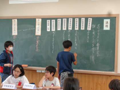 児童会の取組で各委員会の委員長や学級代表が集まって話し合う「ゴールドミーティング」が開かれました。各委員会での取組や、各学級から出ている困っていること、児童会目標などが話し合われました。学校をよくするための会議って素敵ですね。