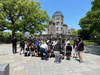 広島電鉄に乗って原爆ドーム前へ。記念写真を撮って平和集会をしました。とっても立派な平和集会に涙が出ました。この思いが伝わるといいですね。