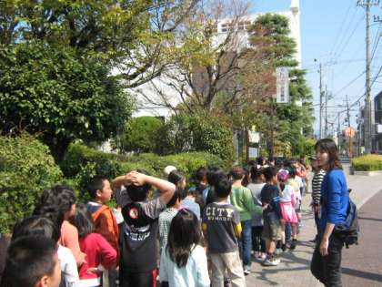 に声をあげ、水道局やしょうざんなど目印になる建物では、先生の話をしっかりと
