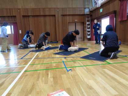 教職員の研修で「普通救命救急講習」がありました。これは毎年教職員は受講しています。あってはいけないことですが、万が一に備えてです。真剣に講習を受け、いざという時に命を救えるようにしています。