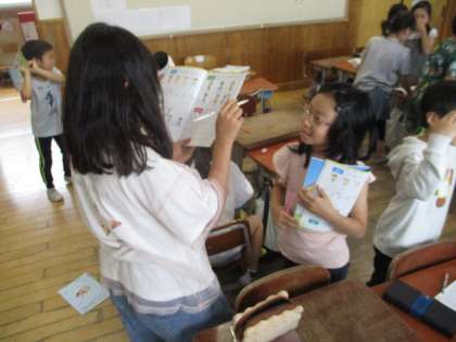 3年生の外国語の学習では、ALTの先生と一緒に学習を進めました。How are you?やHow many?の伝え合いの練習をしました。