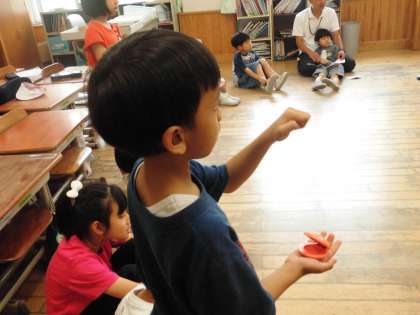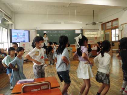 今日の音楽は「拍にのってリズムを打とう」という学習でした。手拍子やカスタネットを使ってリズムを打ったり,みんなで【白くまのジェンカ】を楽しく踊りました。