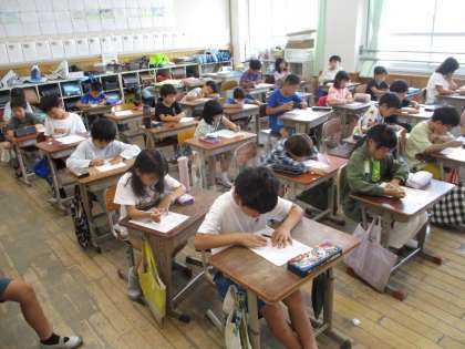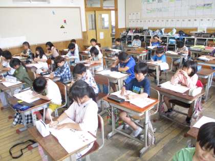 筆算の学習のまとめを行っています。しーんとした空間で黙々と問題を解く様子はとても素晴らしいです。3年生、一歩ずつ成長してきています!