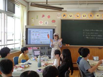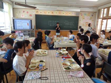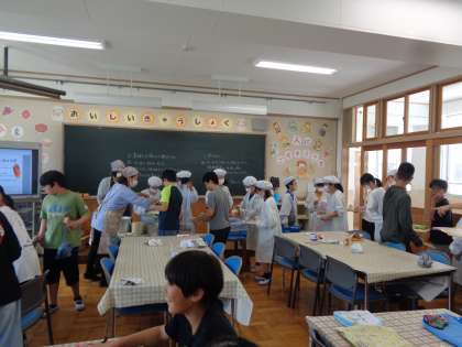 金閣小学校にはランチルームがあります。今日は6年生がランチルームで給食を食べました。いつもとは違う教室で食べる給食は、なんとなくうれしく、いつも以上においしく感じるものです。楽しい給食時間となりました。