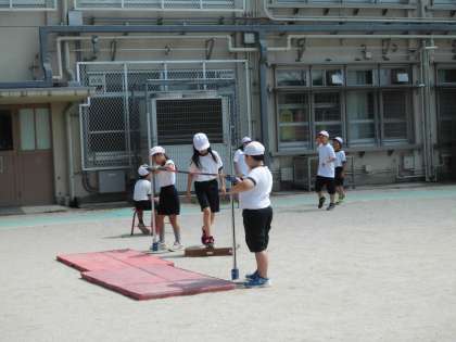 朝から暑い日でしたが,準備・活動・片付けに集中して取り組めました。グループの友だちが,上手く跳べた時は拍手をして共に喜び,失敗した時は適切なアドバイスをし合うといった,共に学び合う姿が見られました。それにともなって記録も上がり,115センチに挑戦する子も出てきました。