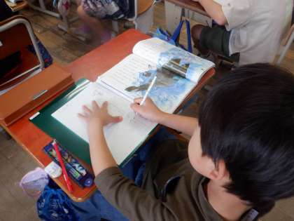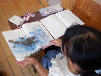大好きな話【スイミー】の学習が始まってから,子ども達は毎日「今日は,どの場面かなあ」「スイミーって,すごいよね。」等と,学習を楽しみにしていてくれるようでうれしいです。長い話ですが,場面の様子がしっかりととらえられるように,毎日の音読練習も頑張ってほしいと思います。