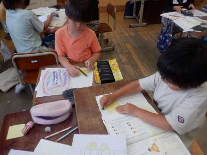「今はないけれど,こんなものがあったらいいな。」と思うものについて考えました。友だちと【質問カード】を使って質問し合うことで,より詳しく考えることができたようです。子ども達からは「宿題手伝いロボット」「空飛ぶくつ」といった,現実的なものから,夢見るものまで色々な意見が出てきました。