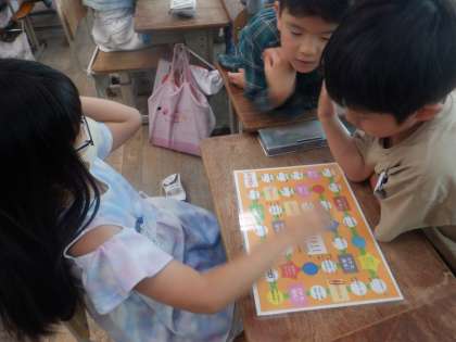 2学期に入り,運動会に向けての前向きな姿勢,金小宣言ビンゴへの意欲…と頑張っている子ども達ですが,さらに互いに相手への理解を深め,一致団結していこうということで,すごろくゲームをしました。みんな笑顔で,和気あいあいとしたいい雰囲気で楽しい時間でした。