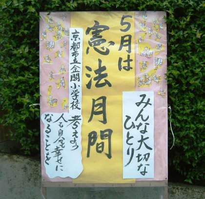 憲法月間のテーマを立て看板にして,本校の東門と西門の二カ所に掲示しています。