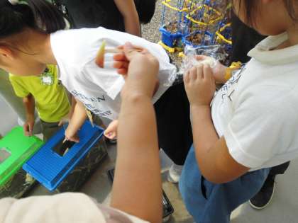 先日,つかまえた生き物となかよしになろうと,休み時間になると,ケースを覗き込んだり,教科書を参考にしながら餌の交換をしたりする等,子ども達の輪ができています。来週には,元の草むらに返す予定なので,今のうちにしっかり観察しておいてほしいです。