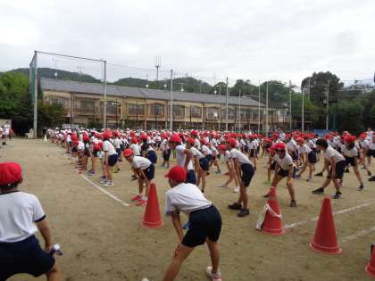 先週に中止になった全校練習が、今日はできました。朝に雨が少し降っていたので心配でしたが、何とかできて良かったです。開閉会式の流れの確認や、全校ダンスの練習がありました。いよいよ今週末に迫った運動会。楽しみです。