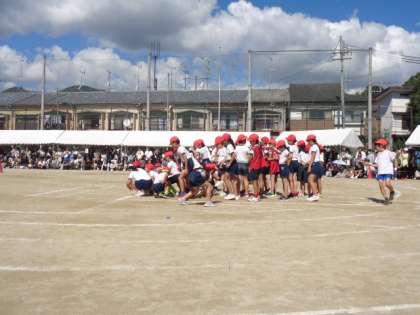 クラスごとに力を合わせて挑戦した台風の目。一生懸命にチャレンジしました。競技中も「落ち着いて!」「集中して!」といい声かけが飛び交っていました。