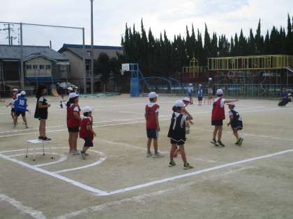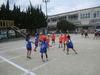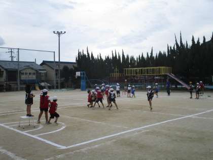 運動会が終わり、3年生の体育の学習ではポートボールの学習を始めました。今日の学習では、今までのパスゲームやエンドボールの学習の成果を出しながら、新しいゲームの方法を学びました。