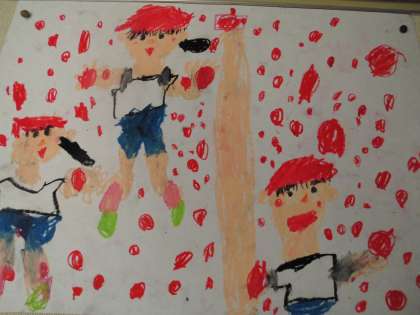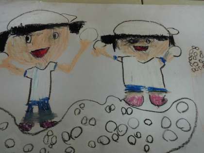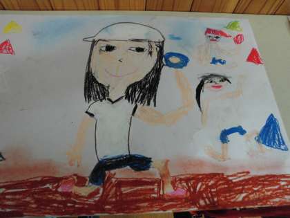 いつもは,文で伝えている「せんせいあのね…」ですが,今日は運動会の楽しかった様子を絵に表してみました。小学校生活初めての運動会は印象深かったようで,楽しく話しながら絵に描くことができました。