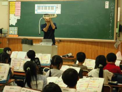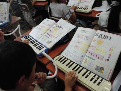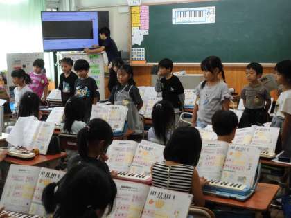 鍵盤ハーモニカを使って,自分の考えた旋律を友だちと聞き合いました。自分のイメージに合う音が出せた子どももいれば,そうでない子どももあったようですが,みんな初めての経験で楽しく活動できました。